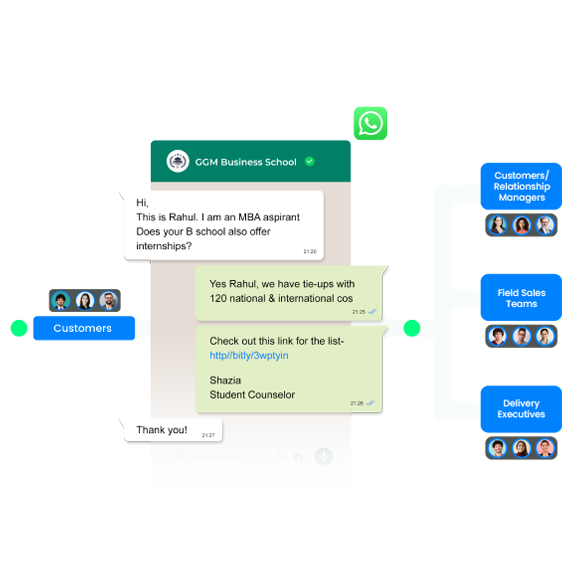 Never miss an opportunity to engage customers and prospects. Seamlessly connect them to the right agents via WhatsApp.